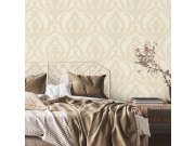 Vliesová tapeta s vinylovým povrchem, odstíny béžové, zámecký damaškový vzor s jemnými metalickými akcenty, textilní struktura. Co vás zaujme: vysoká odolnost, propracované detaily. Design: zámecký, luxusní. Úroveň tapetování: pro začátečníky. Země původu