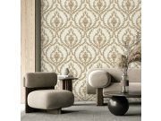 Luxusní krémová vliesová tapeta na zeď, hnědo-zlatý zámecký vzor, drobné zlaté třpytky. Co vás zaujme: luxusní vzhled, propracované detaily. Design: klasický, zámecký. Úroveň tapetování: pro začátečníky. Země původu: Turecko.