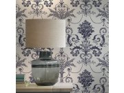 Modro-béžová vliesová tapeta s vinylovým povrchem, zámecký vzor, látková textura. Foto interiéru je pouze ilustrační - odlišné barvy.