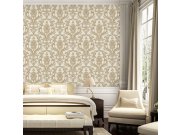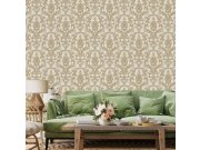 Luxusní béžová vliesová tapeta s vinylovým povrchem, zlatý zámecký vzor. Foto interiéru je pouze ilustrační - odlišné barvy.