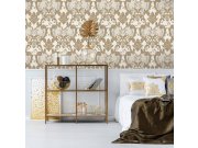 Luxusní světle béžová vliesová tapeta na zeď, hnědý zámecký vzor s drobnými zlatými třpytkami. Co vás zaujme: skvělý design za rozumnou cenu. Design: klasický, zámecký. Úroveň tapetování: pro začátečníky. Země původu: Turecko.