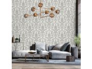 Luxusní šedo-stříbrná vliesová tapeta s vinylovým povrchem, květinový ornamentální vzor. Foto interiéru je pouze ilustrační - odlišné barvy.