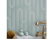 Hladká, pistáciově zelená retro geometrická vliesová tapeta na zeď, obloukový vzor.