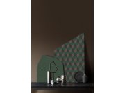 Vliesová tapeta na zeď s vinylovým povrchem s geometrickým vzorem -plastické zelené puntíky na hnědém podkladu.