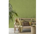 Zelená vliesová tapeta na zeď, geometrické vzory iinspirované přírodní materiály. .