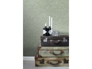 Pololesklá zelená vliesová tapeta s květinovým vzorem na jemně žíhaném podkladu.