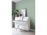 Vliesová, zelená tapeta na zeď s geometrickým vzorem.