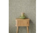 Zelená pololesklá vliesová tapeta na zeď, imitace rustikální čtvercové tkaniny.