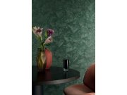 Pololesklá zelená vliesová tapeta s vinylovým povrchem, plastické textury tvoří efektní vzor listů.
