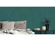 Tmavě zelená vliesová tapeta s jemnými zlatými pruhy. Tapeta je voděodolná.