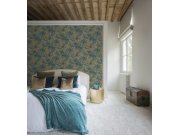 Vliesová tapeta na zeď, motivy listů v zelených a hnědých odstínech, vážky a zlaté trávy. Jemná krupičková textura.