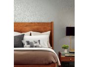 Jemně plastická šedo-stříbrná vliesová tapeta na zeď, imitace hrubší látky.