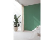 Jemně plastická zeleno-zlatá vliesová tapeta se strukturou rohože.