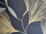 Zelená vliesová tapeta s vinylovým povrchem, motivy zlatých listů Ginkga.
