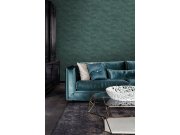 Vliesová, modro-zelená tapeta s šedo-stříbrnými detaily a metalickým pololeskem.