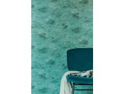 Tyrkysová vliesová tapeta na zeď, jemné stříbrné žíhání. Struktura tapety připomíná strukturu dřeva.