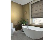 Pololesklá strukturovaná vliesová tapeta s vinylovým povrchem, hrubší látková textura v odstínech hnědé, béžové a zlaté.