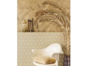 Luxusní metalická zlato-hnědá vliesová tapeta s geometrickým vzorem v art deco stylu. Foto interiéru je pouze ilustrační - odlišné barvy.