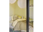 Jemně plastická, grafická vliesová tapeta v odstínech žluté a šedo-béžové, s vinylovým povrchem.