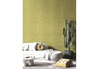 Luxusní vliesová geometrická tapeta na zeď s vinylovým povrchem, pruhovaný vzor do oblouku v odstínech zelené a žluté barvy.