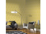 Moderní vliesová tapeta s kvalitním papírovým povrchem - geometrický vzor na hořčicově žlutém podkladu.